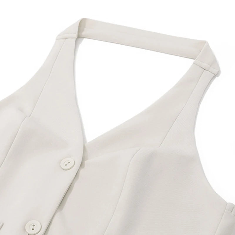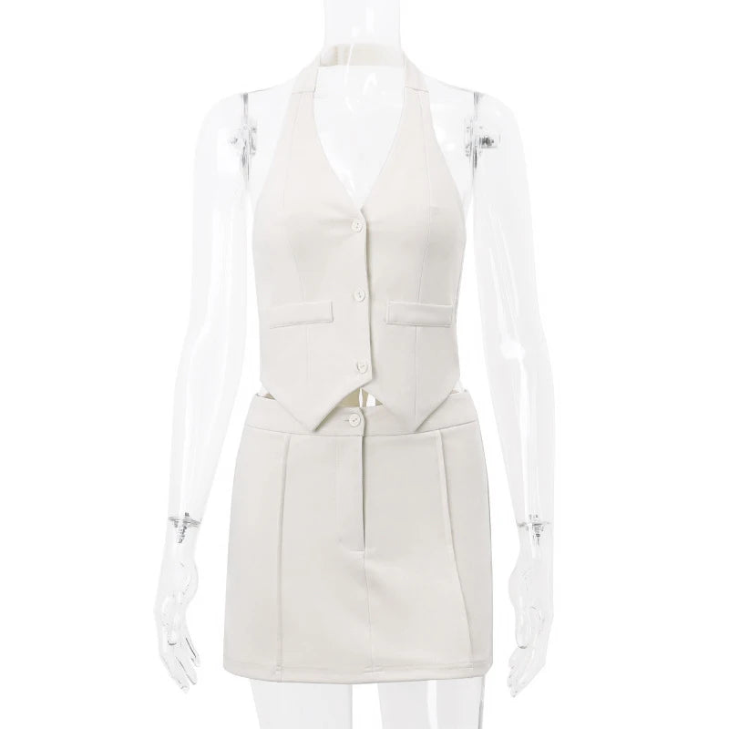 Fairycore Buttom Up Backless Halter Neck Crop Tops +Mini Skirt Matching Suit Outfits Hotsweet 2 Piece Skirt Set Streetwear